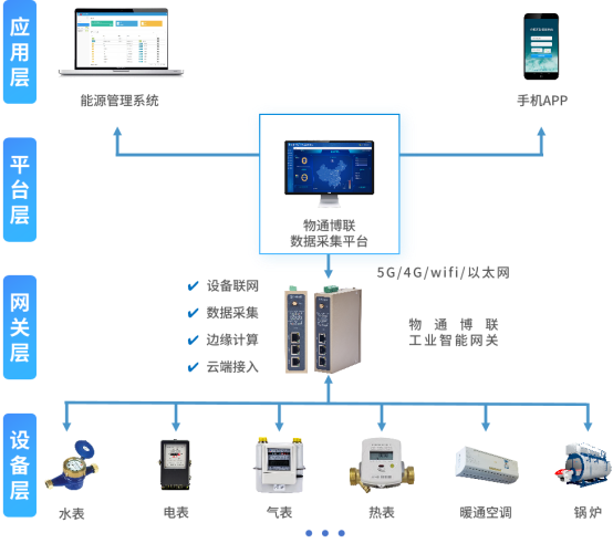 利用乐发lv大众 乐发welcome能源网关采集能耗设备数据上传到能源管理平台,顺利获得数据采集、实时监测、设备管理、故障报警、数据分析等功能,实现对建筑、工厂、企业、楼宇、园区等场景能源监控和管理,提高能耗管控能力,降低资源能源消耗。