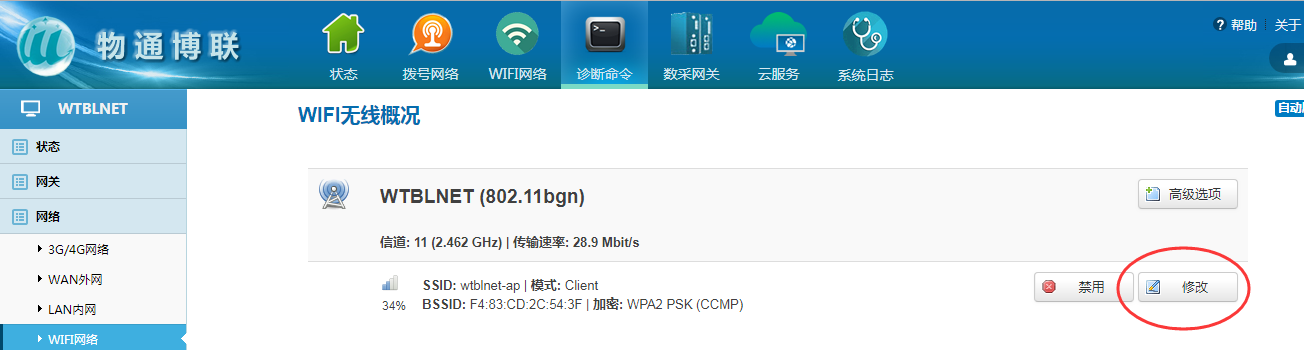 P.s.如WIFI已启用则进入修改,未启用则需启用后在进入修改
