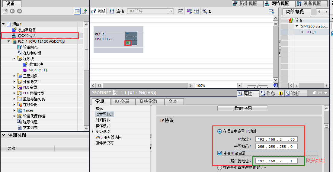 1、打开项目后,确认Siemens控制器以太网参数。