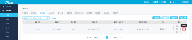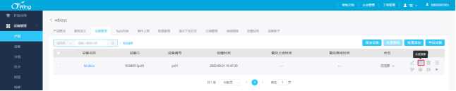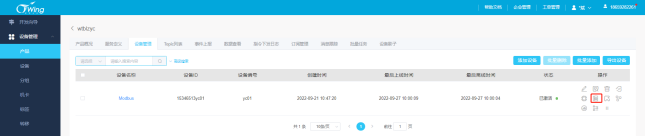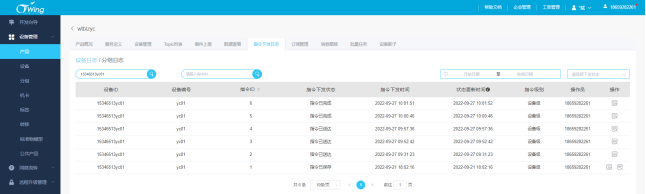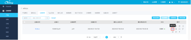 在产品——设备管理页面对设备进行操作,点击“指令下发”