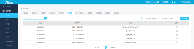 在产品——设备管理页面点击数据查看,即可查看网关上报的数据。