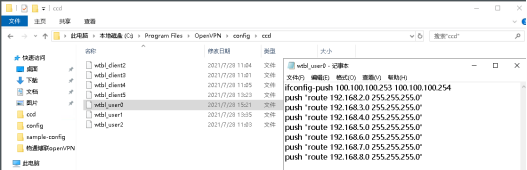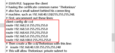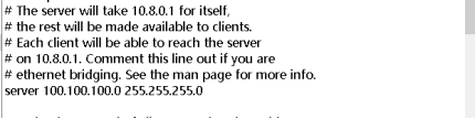 ifconfig-push 100.100.100.2 100.100.100.202 :为隧道地址的两端,默认网关这端的隧道地址为100.100.100.2