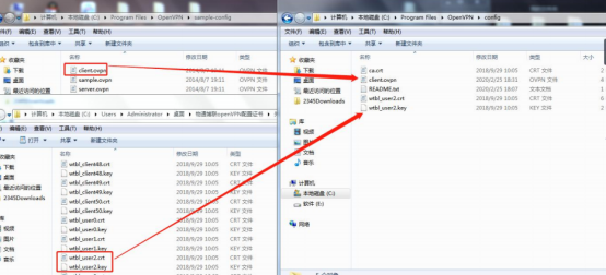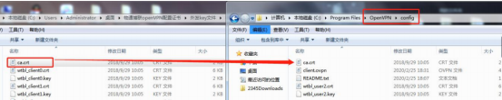 将对应的ca证书、本地证书、本地私钥、client. ovpn放到config文件夹下