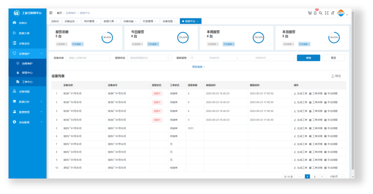 制定全面维保计划,定期巡检与预防性维护,涵盖报修、巡检、维保等全流程工单管理、备品备件、远程维护等全生命周期可视化管理。