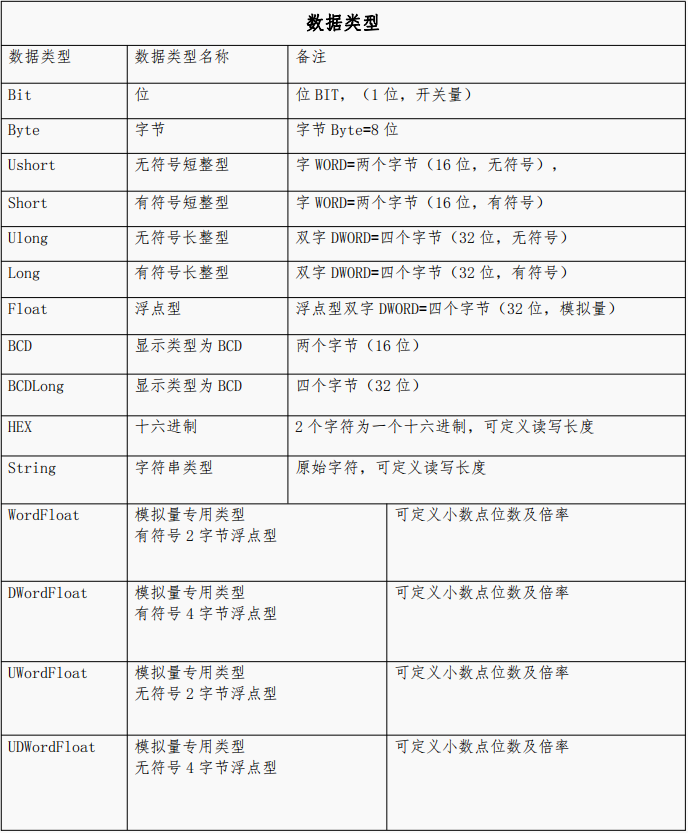 下载中心 视频中心 常见问题 售后服务 工业网关 设备快线 数据云平台 联网设备 问答百科 网关支持采集的数据类型有哪些? 时间:2022-10-26 09:39:53 点击:5771 关键词:工业网关,数据采集,数据类型 问题:网关支持采集的数据类型有哪些? 回答:网关支持采集的数据类型如下表 : 上一篇:工业智能网关会运行时会自动重启怎么处理? 下一篇: 网关采集modbus协议设备时,寄存器类型和地址如何选择?
