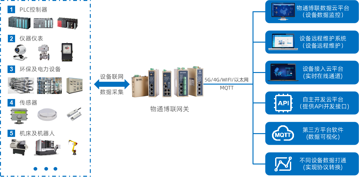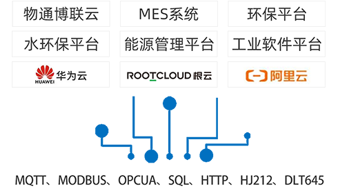 支持顺利获得MQTT、MODBUS、OPCUA、SQL、HTTP数据库等方式接入远端软件平台(包含:乐发lv大众 乐发welcome云平台,客户自主开发的云平台,根云、美云、华为、阿里、百度、微软等IOT云平台,组态软件、MES系统、ERP系统等工业软件)