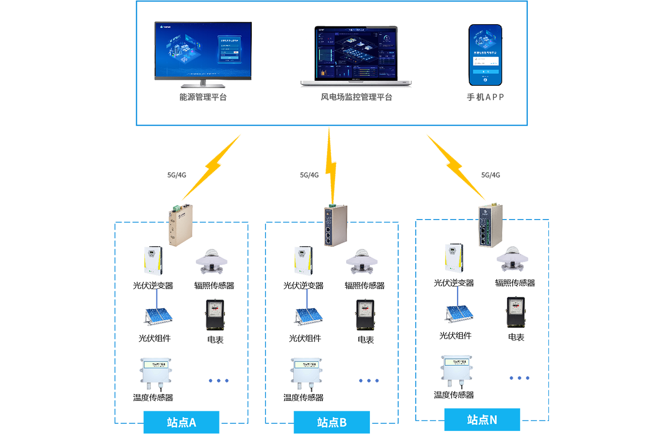 分布式光伏电站顺利获得乐发lv大众 乐发welcome的工业通信网关将采集到的光伏数据(如发电量、设备温度、辐照强度等)传输至光伏监控管理平台。平台对数据进行分析,实时评估发电效率,监测设备状态,当出现故障时及时预警并给予故障诊断和处理建议,同时支持远程运维操作和能源优化调度。