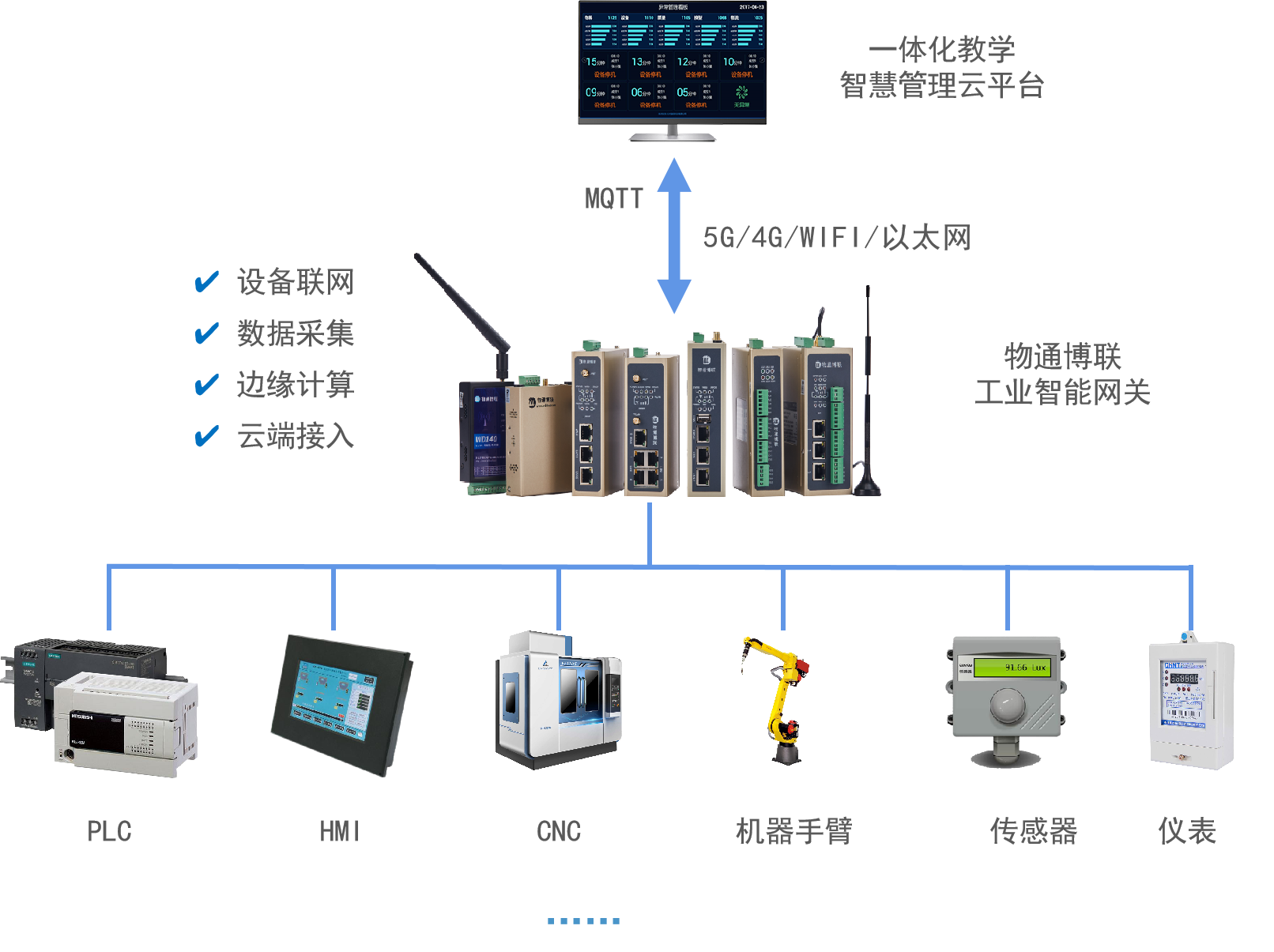 实训平台可能包含大量不同品牌、型号、多种类型的工业设备、PLC、CNC、机械手臂、传感器、执行器等,它们可能使用不同的数据格式、通信协议,导致数据采集难度增大。